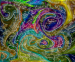 A selection of this art is in this gallery – studies in color, surface texture, lighting and translucence. You can look for the faces and humanoid figures in some of the abstractions. I hope you enjoy them.