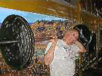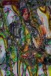 I dove into making paintings with this stuff, mostly portraits and abstractions and a few other works. I kept painting until my wife finally made me stop because the smell was giving her headaches and our cat was going crazy. It was good that I stopped when I did because I was having worse and worse double vision. In the painting process I lost a lot of brushes to hardened epoxy paint. Despite my wearing an apron, the splattered epoxy also permanently decorated several of my good shirts, a few pairs of pants and my best pair of black shoes. They are now only suitable for hippy events. And the family room carpet will never be the same. Small prices considering the dozens of great works I made.*