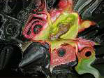 * NOTE As you may have noticed looking at my other galleries, I love to make up stories connected with my art. What you read above about epoxy painting is a story about how I could have created the art using real epoxy in some alternative universe. The actual process I used to make the art was not nearly so messy. All the images in this gallery were created digitally, starting from photographs or my 3d art works. The surface textures, translucence and epoxy-look are Trompe l'Oeil effects created digitally. And my shirts, pants, shoes and family room carpet may be stained here and there, but are at least free of epoxy paint blotches. I still hope you enjoy the art.