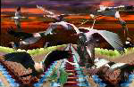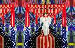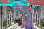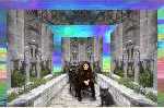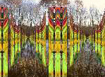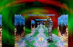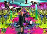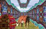 The surrealist Art Kou Kou pieces in this gallery are studies in perspective. They portray real people, animals or objects embedded in the perspective of fantasy passageways – passageways derived from the geometric and fractal transformation of images of real places. In most cases I made the art by starting with a photo I have taken of a real place or other art I have made, and then created the passageways using Kaleider. I incorporated elements of pure 3d-art fantasy, skies, people,animals and objects, and then went on to write the comments and compose the music.